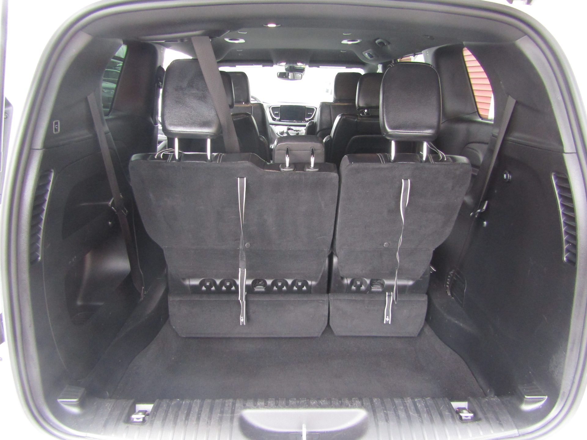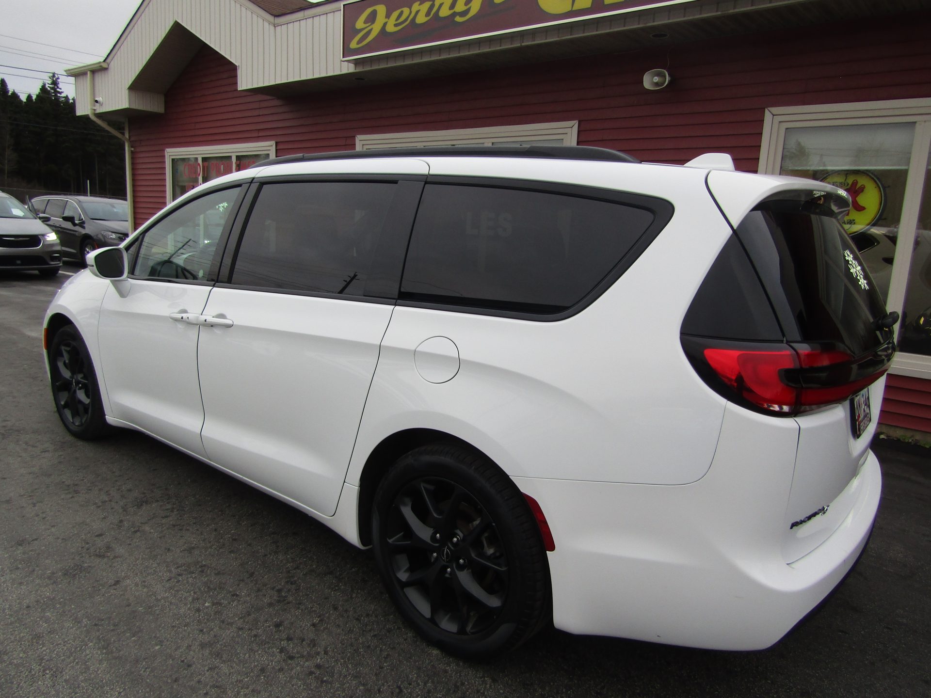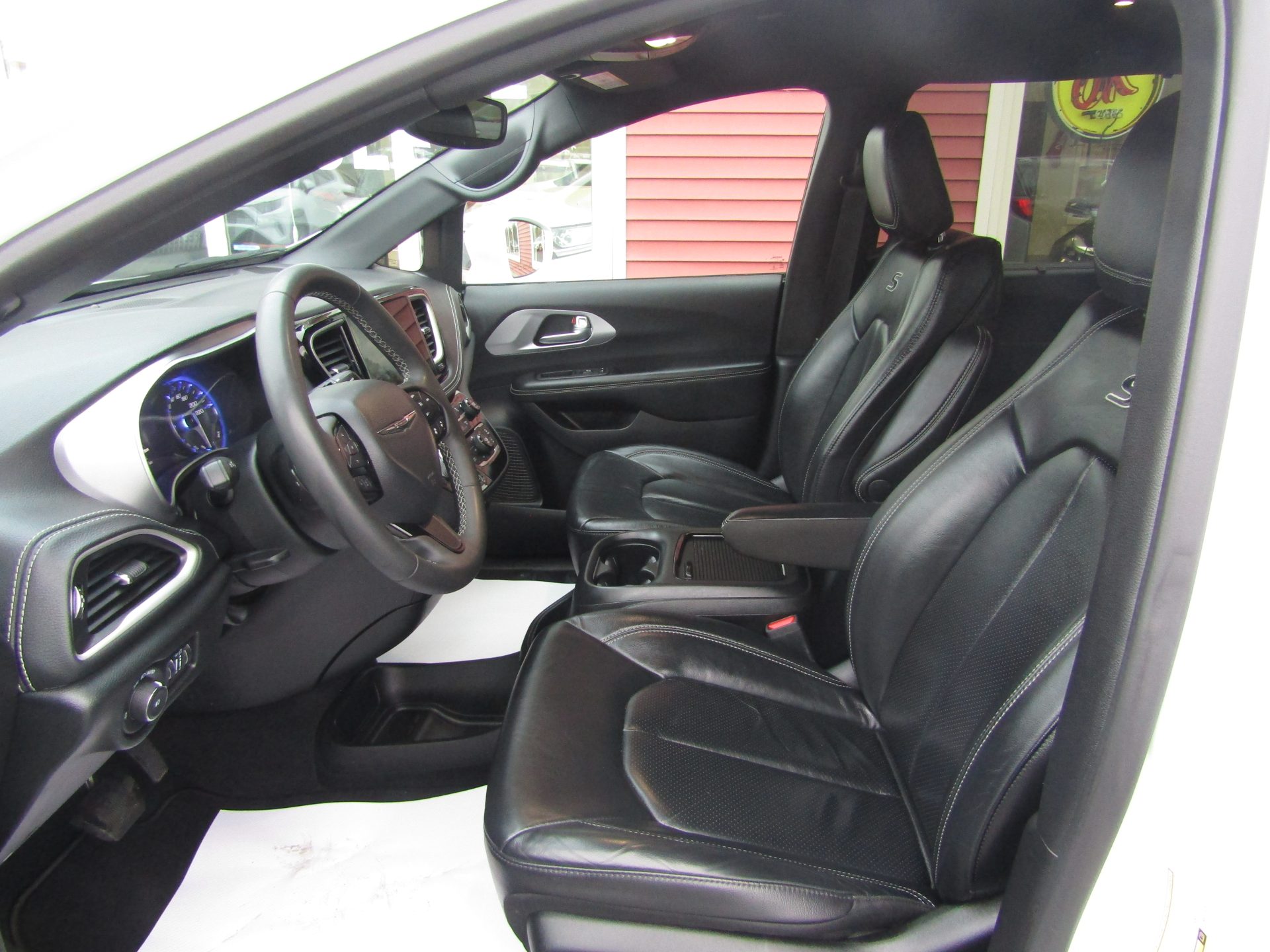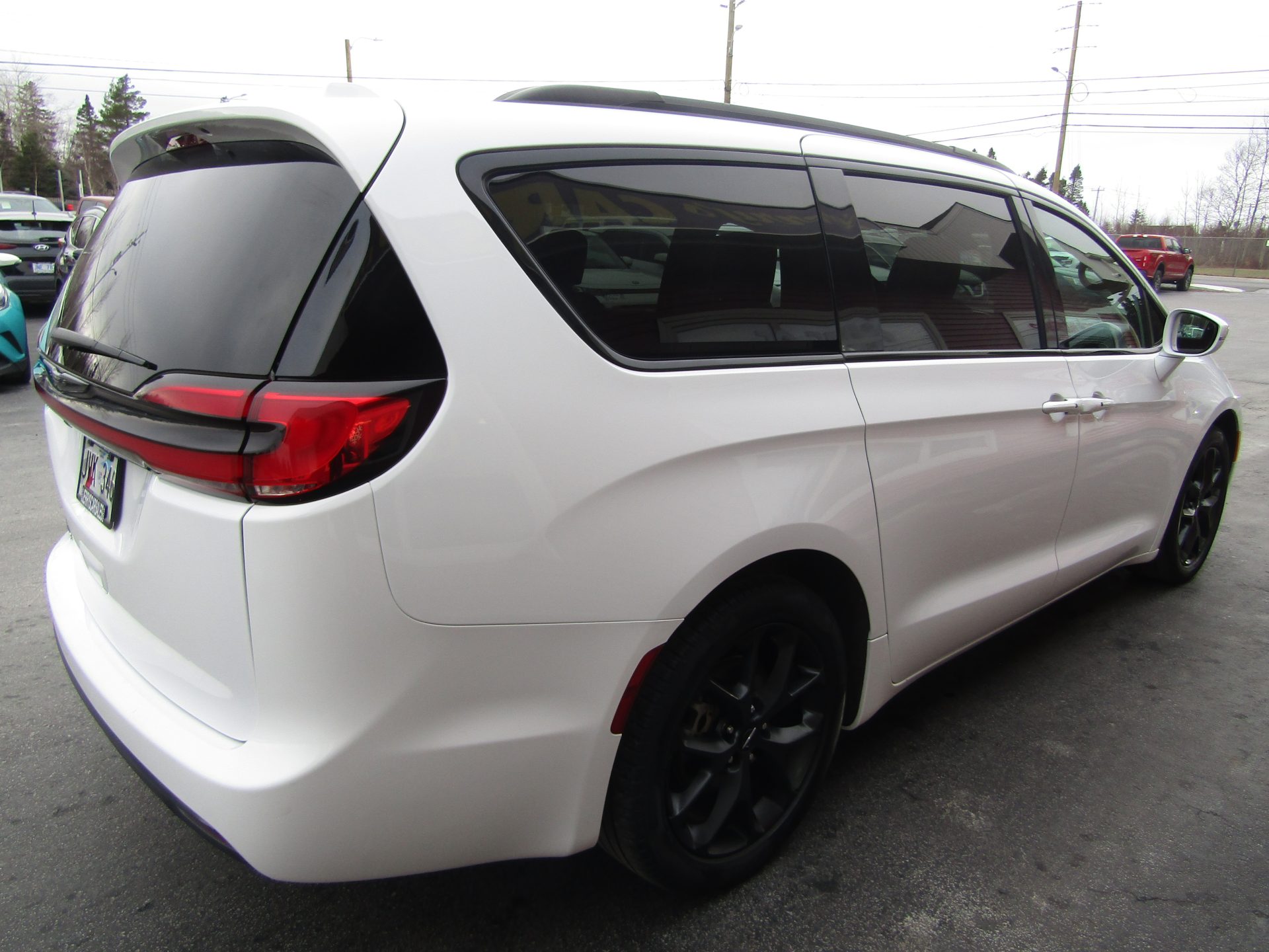 Pacifica Touring L model with S appearance package equipped featuring 20 inch alloy wheels, heated leather faced seats perforated inserts, premium black trim, piano black interior accents, heated steering wheel, power sliding doors, power lift gate, power driver seat, touch screen, camera, Bluetooth, remote start, Apple Car Play/ Android Auto, tri zone air conditioning, front and rear power windows, and Stow N Go seats.
