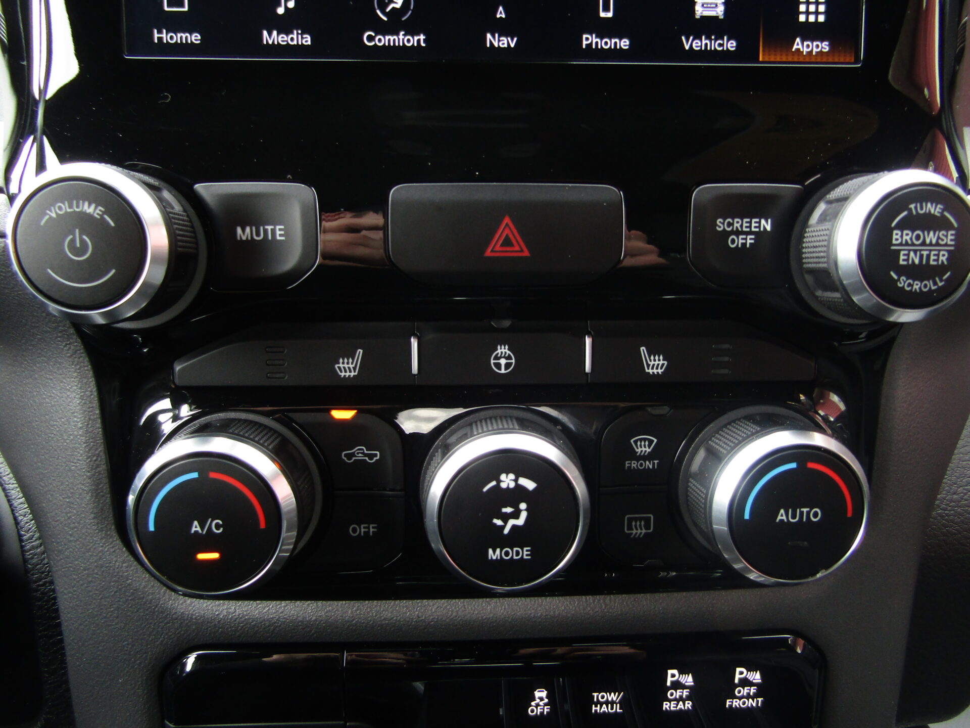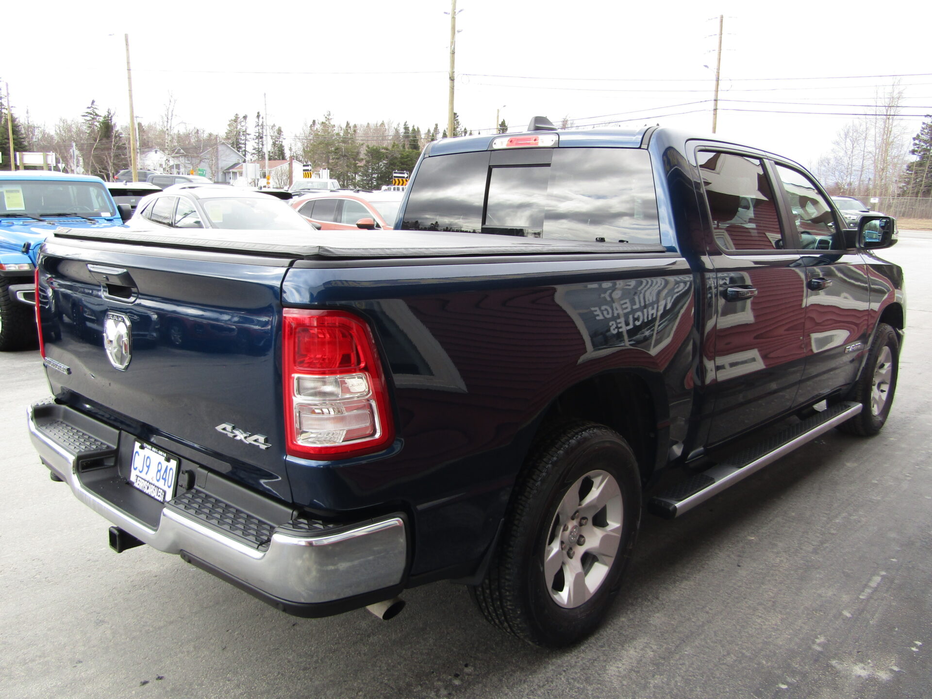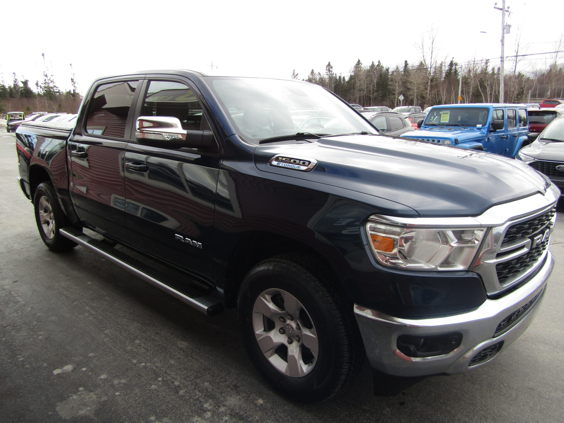 Big Horn edition featuring heated seats, heated steering wheel, 8 way power driver seat, power pedals, push button start, remote start, Apple Car Play / Android Auto, touch screen, navigation, back up camera, front and rear park assist, Bluetooth, trailer tow package, running boards, 20 inch chrome clad wheels, and bed cover. Balance of Ram warranty remaining until 100,000 kilometers.